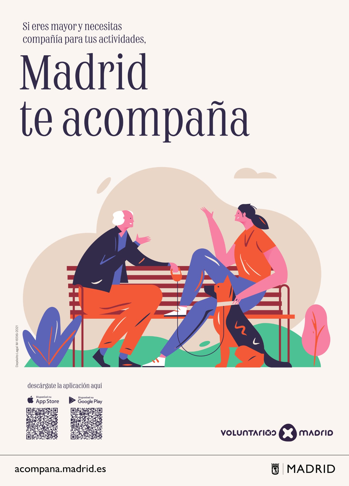 Cualquier persona mayor, puede solicitar la compañía de una persona voluntaria del programa municipal de voluntariado del Ayuntamiento de Madrid para que le acompañe al médico, a realizar compras, a dar un paseo, ir al cine, o al teatro o a cualquier otra actividad lúdica, a realizar gestiones administrativas, acompañamiento en hospitales, acompañamiento para sacar las mascotas, o simplemente para hablar…